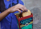 Kinder erfühlen und benennen Dinge in einer Tasche, ohne sie zu sehen.
